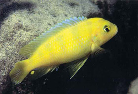 interesse. Si tratta dello P. lombardoi, Ciclide endemico dell'isola di Mbenji e della porzione centrale del lago (Benga, Nkhomo Reef), che frequenta le zone di transizione tra rocce e sabbia dove si nutre principalmente di zooplancton e materia vegetale raccolto rovistando sul fondo, al pari della maggioranza degli Mbuna ( Konings, 1990; Naish e Ribbink, 1990). Alcune peculiarità distinguono questa specie dal resto dei Ciclidi del Malawi, come ad esempio il fatto che i maschi mostrano una livrea gialla, mentre le femmine ne presentano una col fondo blu e barre verticali nere. Tale fenomeno è detto della colorazione inversa ed è già stato descritto in P. zebra "mumbo", P. zebra "patricki", P. zebra"cobalt",P.zebra "mpanga" e P. zebra "pearly" (Ribbink et al., 1983). Tuttavia le sorprese che ci riserva questa specie non si fermano qui, infatti in natura alcuni esemplari con la livrea adulta maschile sono stati scoperti mentre incubavano in bocca delle uova, episodio che ha dato adito a numerose e controverse interpretazioni. Alcuni autori hanno supposto che questa specie potesse essere ermafrodita, ovvero che durante lo sviluppo attraversasse sia la condizione maschile che quella femminile, fenomeno peraltro piuttosto frequente fra i pesci. Tuttavia recentemente due ricercatori sudafricani hanno condotto uno studio approfondito sul problema (Naish e Ribbink, 1990) dal quale sono emerse delle interessanti caratteristiche sia sotto il profilo etologico che istologico, cioè dello studio dei tessuti. Si è osservato in acquario come le femmine di questa specie siano in grado di costruire un nido, delimitandolo e definendolo al pari di quanto fanno in natura i maschi. Inoltre in un caso è accaduto che rimuovendo tutti i maschi da una vasca una femmina, che già precedentemente dominava sulle altre, ha acquisito in circa 2 mesi i caratteri secondari propri di un qualsiasi maschio (colorazione giallo-blu). Tutto ciò senza modificare assolutamente la sua condizione sessuale. L'ipotesi più probabile che risulta da questo studio è quindi che P. lombardoi sia una specie con femmine dimorfiche, anche se non è stato possibile escludere categoricamente che i maschi adottino l'incubazione orale. E' interessante scoprire caratteristiche come queste in pesci che forse quasi tutti consideravamo ormai privi di alcun segreto, poiché oltre a testimoniare la bellezza e la complessità della natura, incentivano ognuno di noi ad osservare cosa accade dietro il vetro dell'acquario con molta attenzione, fattore che ritengo sia il vero motore della nostra comune passione.