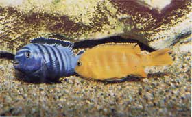 • Accanto a queste vi sono specie quasi completamente prive di territorialità come tutti i 'veri' Melanochromis (M. auratus, M. chipokae, M. parallelus, ecc.), alcuni dei 'falsi' come Pseudotropheus crabro (da alcuni ancora chiamato Melanochromis crabro} e M. labrosus. Con loro diversi Pseudotropheus, in particolare le specie del gruppo Tropheops, sono poco o per niente territoriali. Le specie del complesso 'zebra'sono invece territoriali solo per quel che riguarda i loro congeneri.